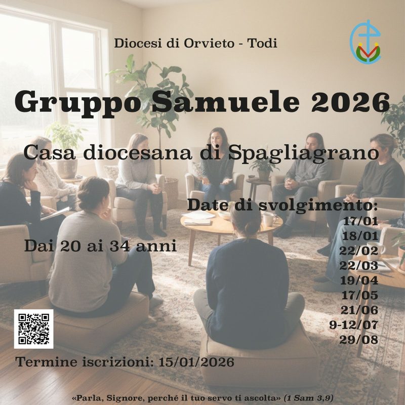 Il Corso diocesano di discernimento vocazionale (Percorso del Gruppo Samuele) è proposto e realizzato dalla Pastorale giovanile vocazionale della Diocesi di Orvieto-Todi. L’edizione 2026 si terrà presso la casa diocesana di Spagliagrano nelle seguenti date: